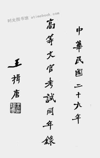 | 网盘路径:/时光图书馆珍藏系列/书籍文件/老图书/《中华民国二十九年_高等文官考试同年录》电子版合集.db | ||