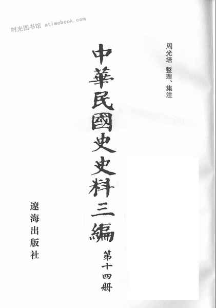 | 网盘路径:/时光图书馆珍藏系列/书籍文件/老图书/《中华民国史史料三编_第14册》电子版合集.db | ||