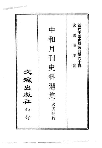 | 网盘路径:/时光图书馆珍藏系列/书籍文件/老图书/《中和月刊史料选集》电子版合集.db | ||