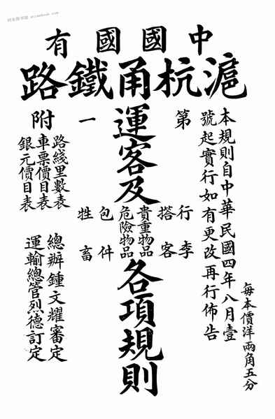 | 网盘路径:/时光图书馆珍藏系列/书籍文件/老图书/《中国国有沪杭甬铁路运客及行李_搭客_贵重物品_危险物品_包件_牲畜各项规则》电子版合集.db | ||