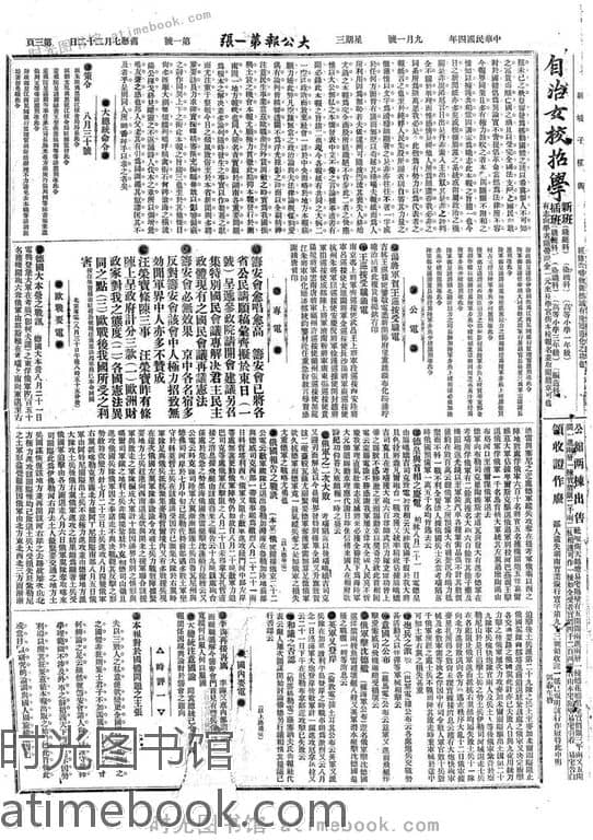 网盘路径:/时光图书馆珍藏系列/书籍文件/老报纸/湖南/《大公报》(长沙)1915-1947/《大公报》(长沙)1915-1917年合集.db