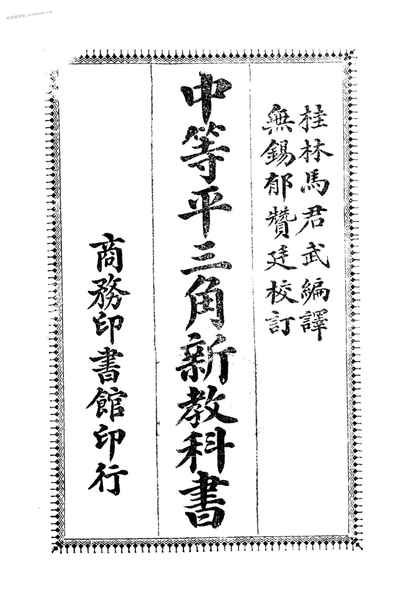| 网盘路径:/时光图书馆珍藏系列/书籍文件/老图书/《中等平三角新教科书》电子版合集.db | ||