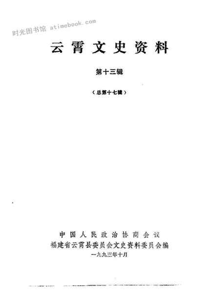 | 网盘路径:/时光图书馆珍藏系列/书籍文件/老图书/《云霄文史资料第13辑》电子版合集.db | ||