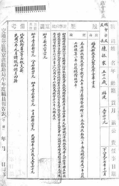 | 关键词:铁路局,职员表,京汉铁路,陈振家, | ||