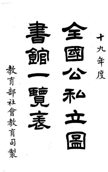 | 网盘路径:/时光图书馆珍藏系列/书籍文件/老图书/《全国公私图书馆一览表》电子版合集.db | ||