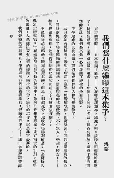 | 网盘路径:/时光图书馆珍藏系列/书籍文件/老图书/《全民抗战汇集》电子版合集.db | ||