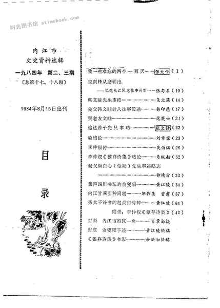 | 网盘路径:/时光图书馆珍藏系列/书籍文件/老图书/《内江市文史资料选辑_第二、三期》电子版合集.db | ||