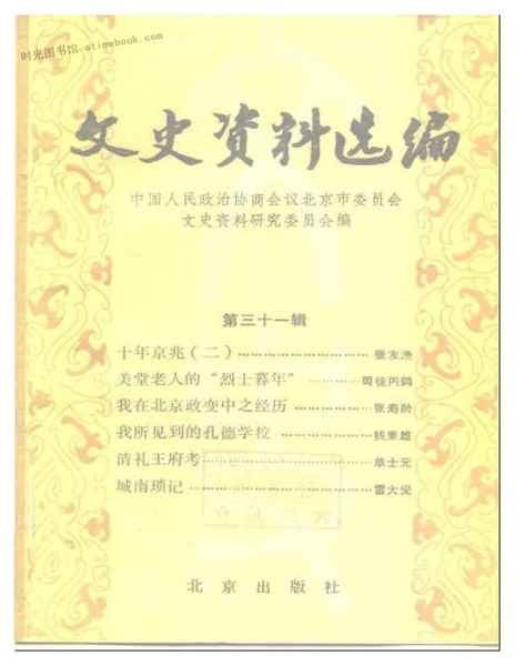 | 网盘路径:/时光图书馆珍藏系列/书籍文件/老图书/《北京市文史资料选编_第31辑》电子版合集.db | ||