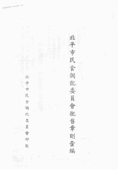 | 网盘路径:/时光图书馆珍藏系列/书籍文件/老图书/《北平市民食调配委员会配售章则汇编》电子版合集.db | ||