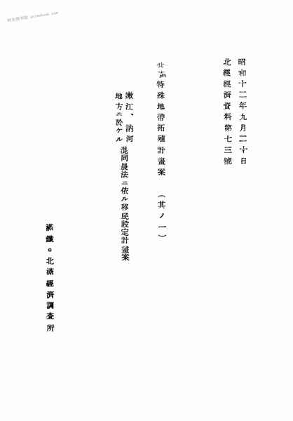 | 网盘路径:/时光图书馆珍藏系列/书籍文件/老图书/《北满特殊地带拓殖计划案(其ノ一)》电子版合集.db | ||