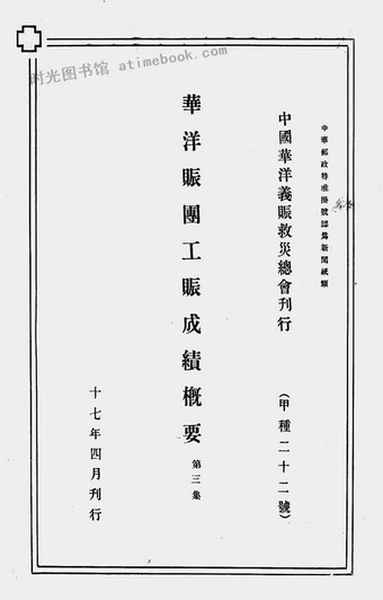 | 网盘路径:/时光图书馆珍藏系列/书籍文件/老图书/《华洋赈团工赈成绩概要(第三集)》电子版合集.db | ||