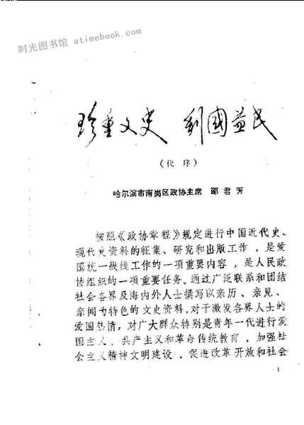 | 网盘路径:/时光图书馆珍藏系列/书籍文件/老图书/《南岗文史_第1辑》电子版合集.db | ||