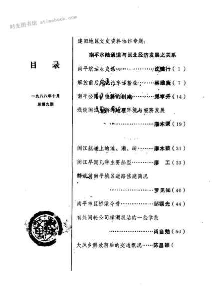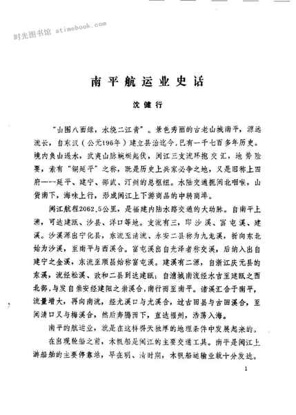 | 网盘路径:/时光图书馆珍藏系列/书籍文件/老图书/《南平文史资料_第9辑_闽北水陆交通概况专辑》电子版合集.db | ||