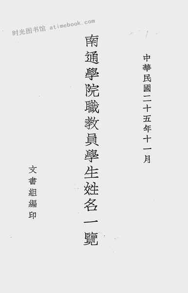 | 网盘路径:/时光图书馆珍藏系列/书籍文件/老图书/《南通学院职教员学生姓名一览》电子版合集.db | ||