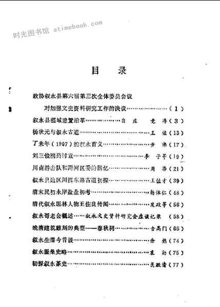 | 网盘路径:/时光图书馆珍藏系列/书籍文件/老图书/《叙永县文史资料选辑_第6辑》电子版合集.db | ||