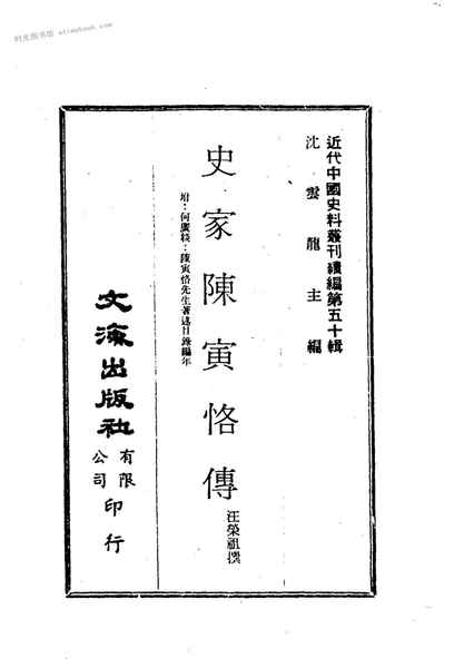 | 网盘路径:/时光图书馆珍藏系列/书籍文件/老图书/《史家陈寅恪传(附何广棪、陈寅恪先生著述目录编年)》电子版合集.db | ||