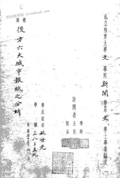 | 网盘路径:/时光图书馆珍藏系列/书籍文件/老图书/《后方六大城市报纸之分析》电子版合集.db | ||
