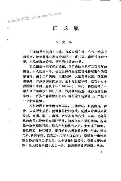 | 网盘路径:/时光图书馆珍藏系列/书籍文件/老图书/《启东文史_第12辑_启东集镇史专辑》电子版合集.db | ||