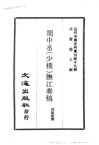 | 网盘路径:/时光图书馆珍藏系列/书籍文件/老图书/《周中丞(少朴)抚江奏稿》电子版合集.db | ||