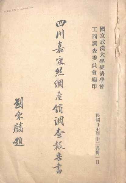 | 关键词:四川嘉定丝绸产销调查报告书, | ||