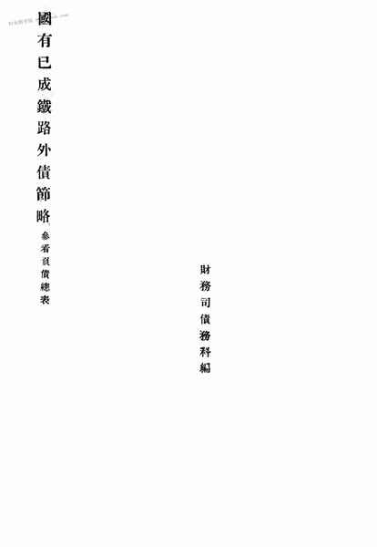 | 网盘路径:/时光图书馆珍藏系列/书籍文件/老图书/《国有已成铁路债务节略》电子版合集.db | ||