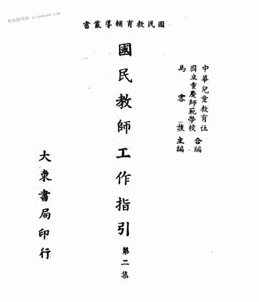 | 网盘路径:/时光图书馆珍藏系列/书籍文件/老图书/《国民教师工作指引第二集》电子版合集.db | ||
