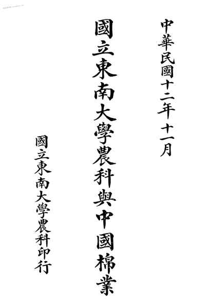 | 网盘路径:/时光图书馆珍藏系列/书籍文件/老图书/《国立东南大学农科与中国棉业》电子版合集.db | ||