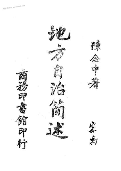 | 网盘路径:/时光图书馆珍藏系列/书籍文件/老图书/《地方自治简述》电子版合集.db | ||