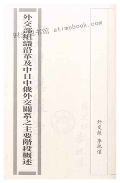 | 网盘路径:/时光图书馆珍藏系列/书籍文件/老图书/《外交部组织沿革及中日中俄外交关系之主要阶段概述》电子版合集.db | ||