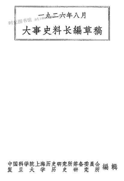 | 网盘路径:/时光图书馆珍藏系列/书籍文件/老图书/《大事史料长编草稿(一九二六年八月)》电子版合集.db | ||