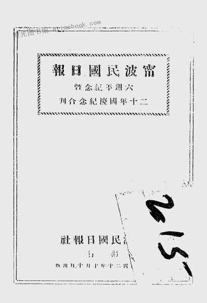 | 网盘路径:/时光图书馆珍藏系列/书籍文件/老图书/《宁波民国日报六周年纪念暨二十年国庆纪念合刊》电子版合集.db | ||