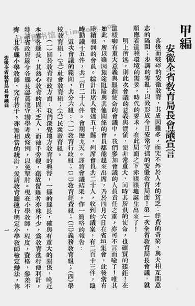 | 网盘路径:/时光图书馆珍藏系列/书籍文件/老图书/《安徽全省教育局长会议录》电子版合集.db | ||