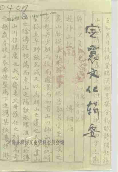 | 网盘路径:/时光图书馆珍藏系列/书籍文件/老图书/《定襄文史资料_第5辑_定襄文化辑要》电子版合集.db | ||