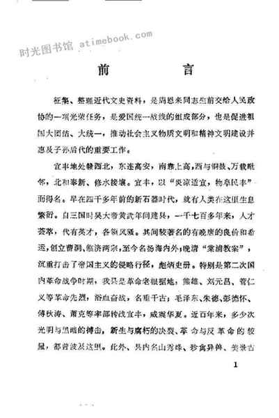 | 网盘路径:/时光图书馆珍藏系列/书籍文件/老图书/《宜丰文史资料_第1辑》电子版合集.db | ||