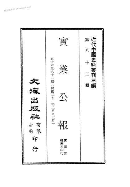 | 网盘路径:/时光图书馆珍藏系列/书籍文件/老图书/《实业公报五十六期至六十一期(民国二十一年二月至三月)》电子版合集.db | ||