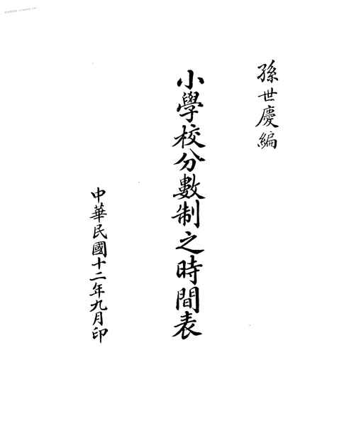 | 网盘路径:/时光图书馆珍藏系列/书籍文件/老图书/《小学校分数制之时间表》电子版合集.db | ||