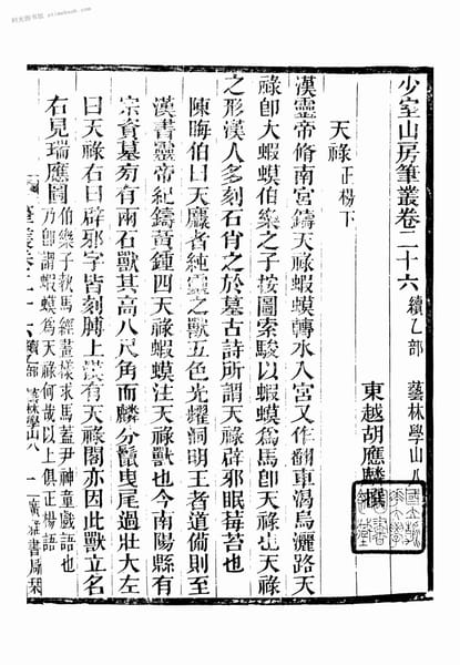 | 关键词:少室山房笔丛,胡应麟,经籍会通,丹铅新录,史书占毕,易林学山,九流绪论,四部正讹,三坟补逸,二酉缀遗,华阳博议,庄岳委谈,玉壶遐览,双树幻钞, | ||