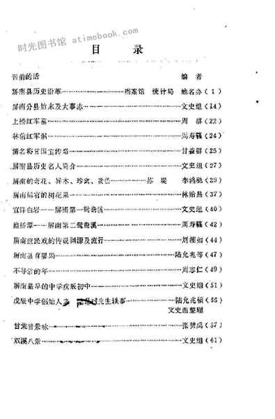 | 网盘路径:/时光图书馆珍藏系列/书籍文件/老图书/《屏南文史资料_第1辑》电子版合集.db | ||