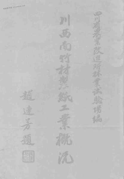 | 网盘路径:/时光图书馆珍藏系列/书籍文件/老图书/《川西南竹材制纸工业概况》电子版合集.db | ||