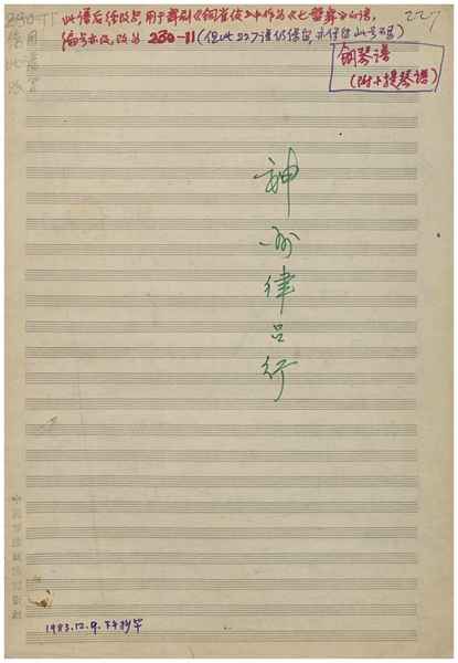 文件下载 | 名称:《张定和手稿:神州律吕行_钢琴谱(附小提琴谱)》电子版合集 | |