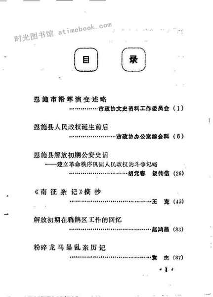 | 网盘路径:/时光图书馆珍藏系列/书籍文件/老图书/《恩施文史资料_第1辑_为纪念恩施解放36周年》电子版合集.db | ||