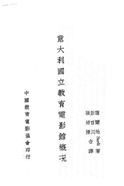 | 网盘路径:/时光图书馆珍藏系列/书籍文件/老图书/《意大利国立教育电影馆概况》电子版合集.db | ||