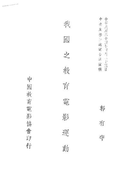 | 网盘路径:/时光图书馆珍藏系列/书籍文件/老图书/《我国之教育电影运动》电子版合集.db | ||