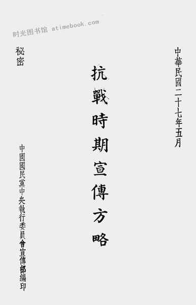 | 网盘路径:/时光图书馆珍藏系列/书籍文件/老图书/《抗战时期宣传方略》电子版合集.db | ||
