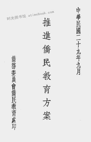 | 网盘路径:/时光图书馆珍藏系列/书籍文件/老图书/《推进侨民教育方案》电子版合集.db | ||