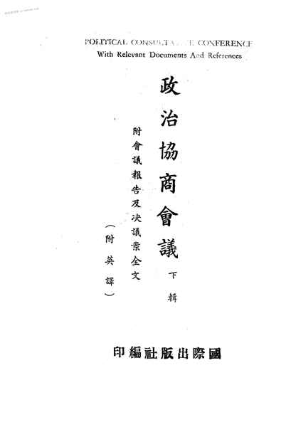 | 网盘路径:/时光图书馆珍藏系列/书籍文件/老图书/《政治协商会议(下辑)》电子版合集.db | ||