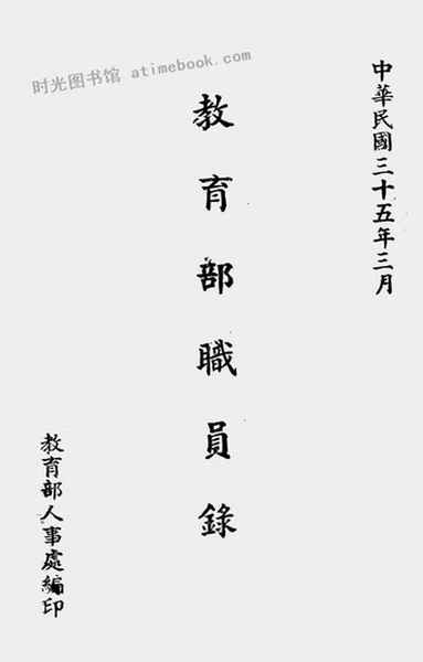| 网盘路径:/时光图书馆珍藏系列/书籍文件/老图书/《教育部职员录(民国三十五年)》电子版合集.db | ||