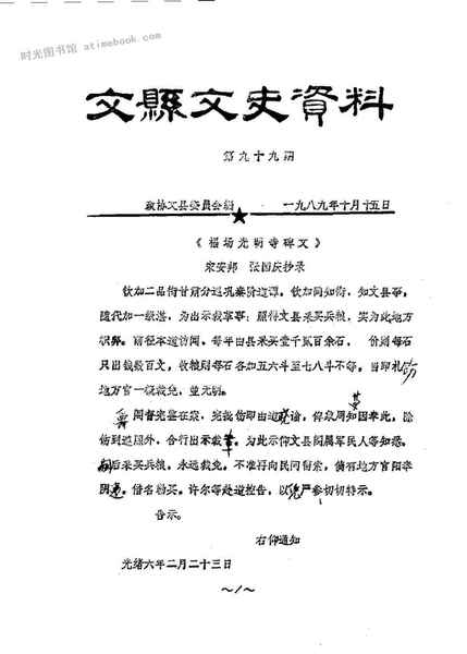| 网盘路径:/时光图书馆珍藏系列/书籍文件/老图书/《文县文史资料_第99期》电子版合集.db | ||