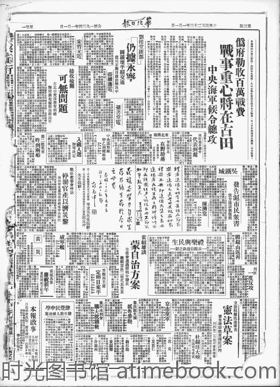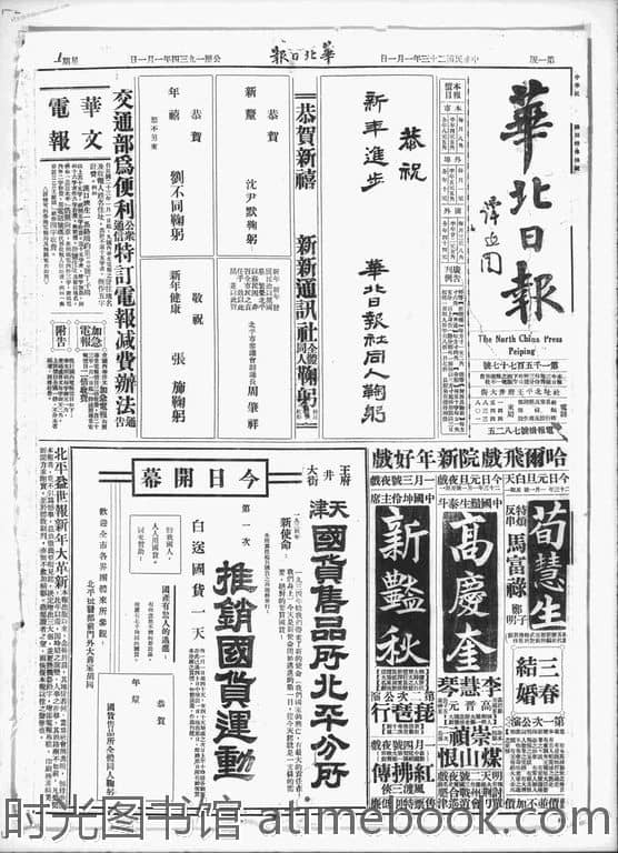 网盘路径:/时光图书馆珍藏系列/书籍文件/老报纸/北京/《华北日报》(北京)1929-1949/《华北日报》北京1934年影印版合集.db
