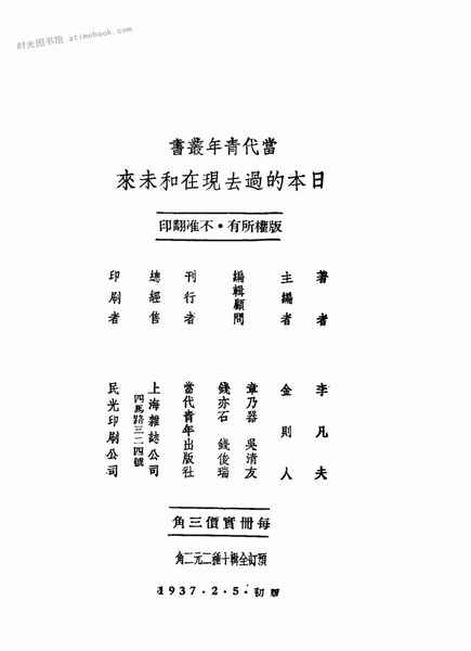 | 网盘路径:/时光图书馆珍藏系列/书籍文件/老图书/《日本的过去现在和未来》电子版合集.db | ||